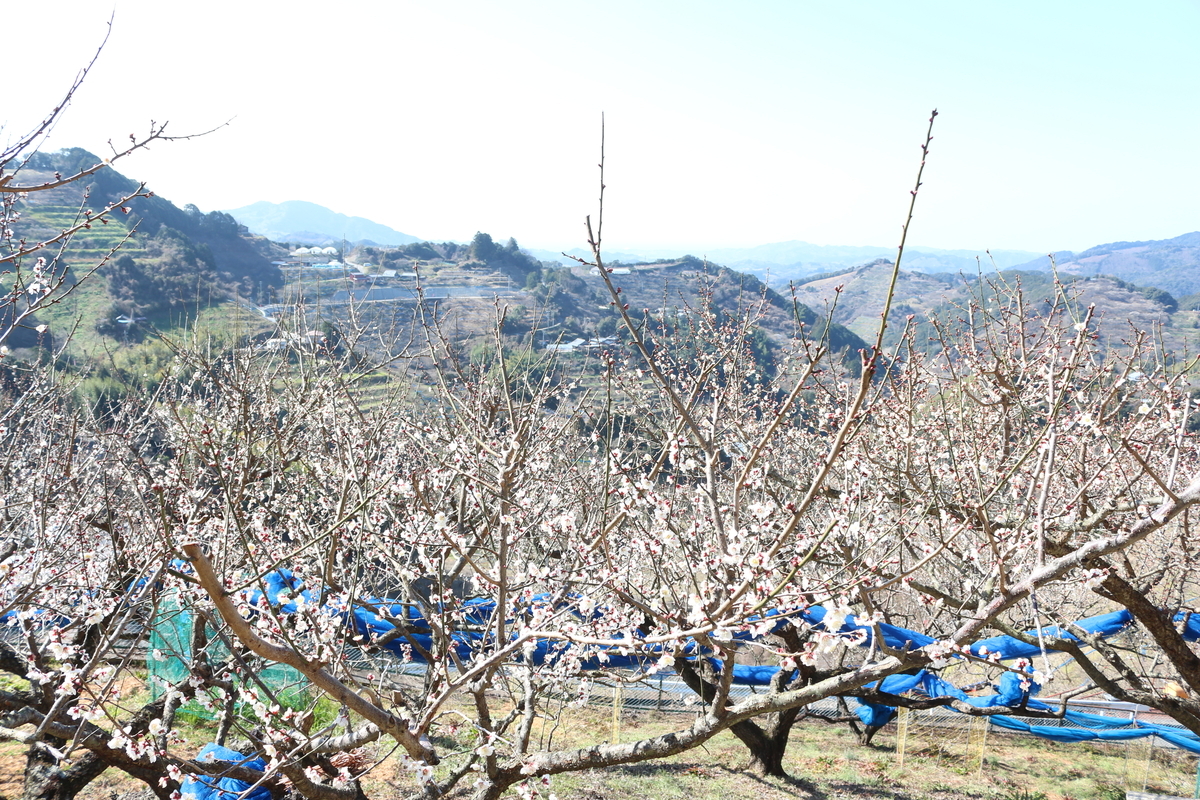 南部インターを降りて梅林に向かう途中では、道路沿いに梅畑の花が満開を迎えていて、車窓からでも梅の香りを感じ取れた。