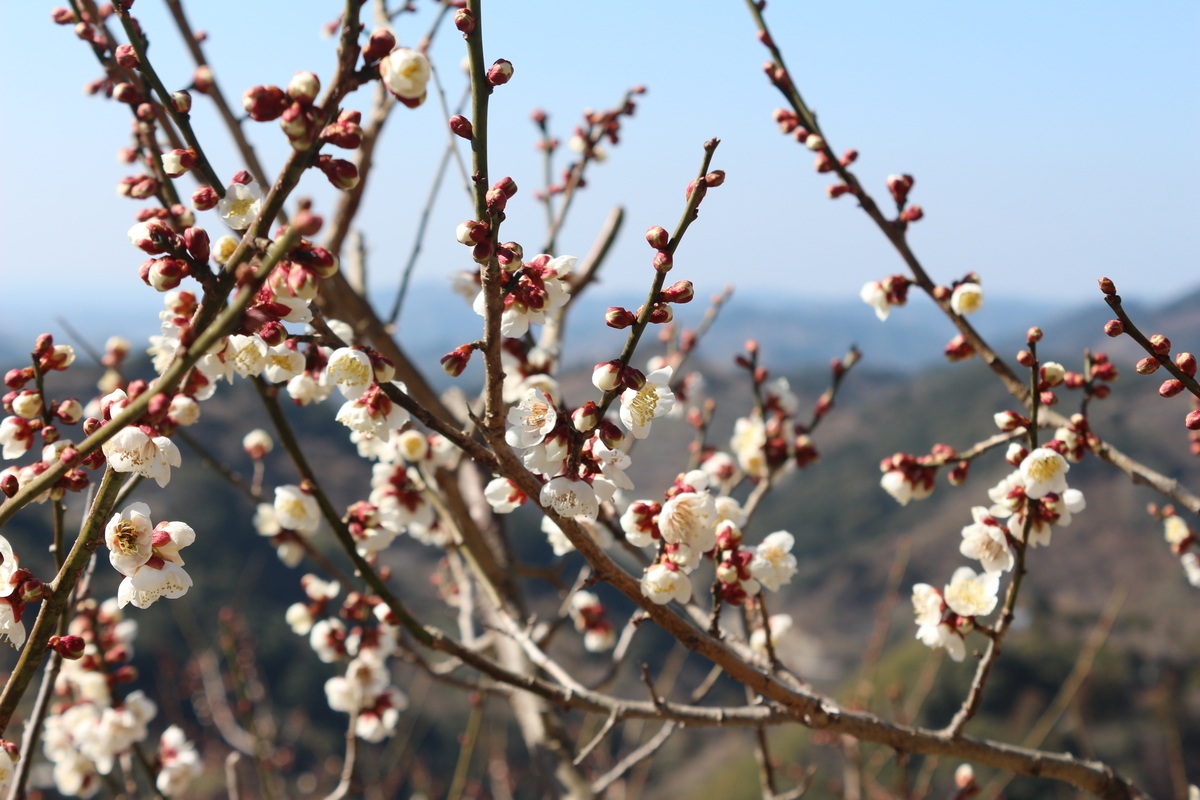 紀州石神田辺梅林は和歌山県田辺市上芳養にある約30万本の梅が咲き誇る見応えのある梅の名所。標高が約300m程度にあるこの梅林は、今日は5~6分咲き。